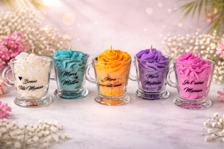 Cette bougie chantilly 8cl est personnalisable avec le message de votre choix.